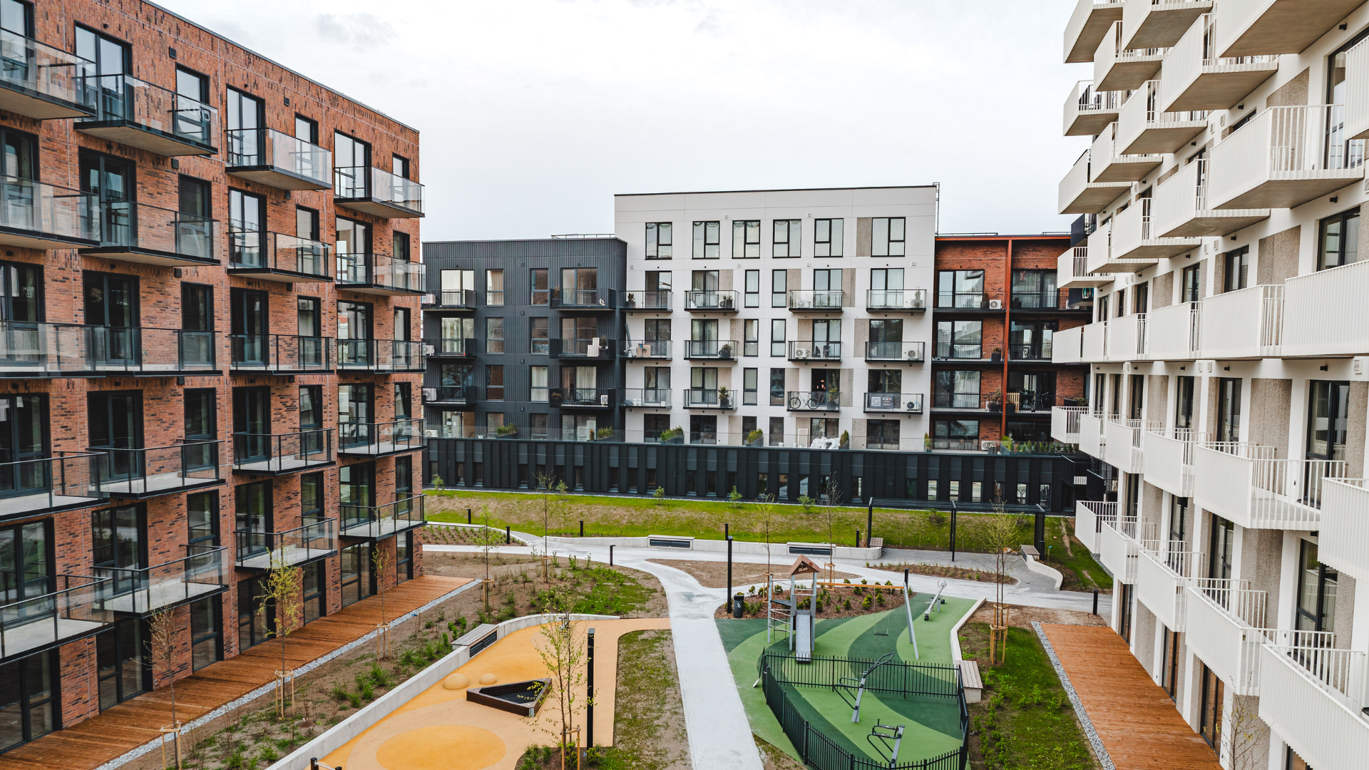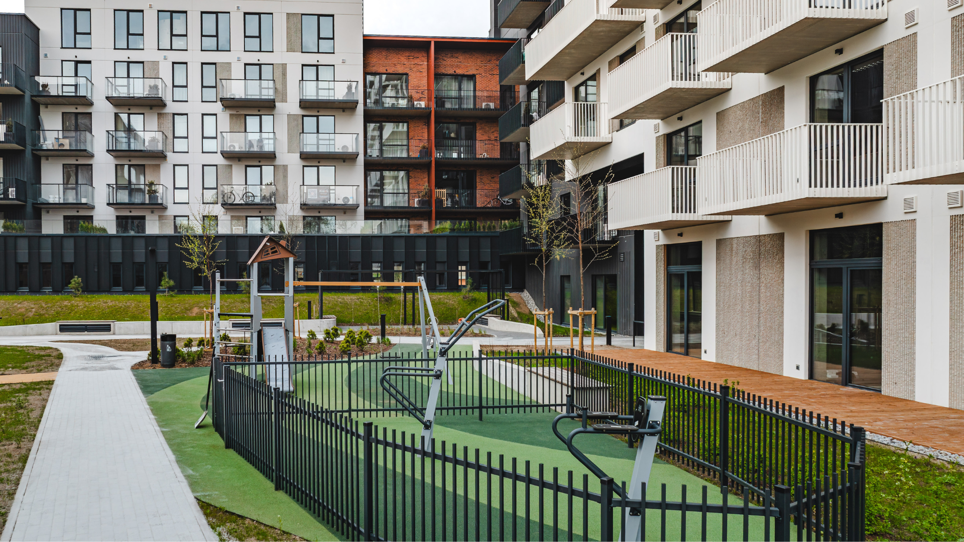 Pro plačius langus atsiveria žalumos kupinas kiemas – gyva poilsio erdvė su tūkstančiais augalų. Čia gera išsitiesti ant žolės ar pavėsinėje su knyga, pasportuoti ar tiesiog sustoti akimirkai. Vaikų žaidimai, susitikimai su kaimynais ar ramus darbas po atviru dangumi – viskas čia turi savo kampelį. O uždaras, nuo miesto šurmulio apsaugotas kvartalas suteikia privatumo, saugumo ir ramybės pojūtį.